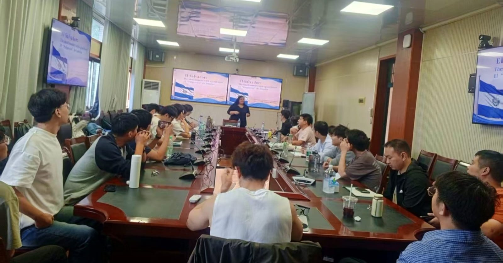 Durante su estancia académica en China, la Mtra. Ana Gladis ha tenido una participación destacada en actividades que fortalecen el vínculo académico y cultural entre El Salvador y el país asiático. Como parte de una iniciativa de la Escuela de Idiomas de la Central China Normal University (CCNU), ofreció la ponencia "El Salvador, el pequeño país con un corazón gigante", dirigida a estudiantes chinos de áreas técnicas como ingeniería y computación.