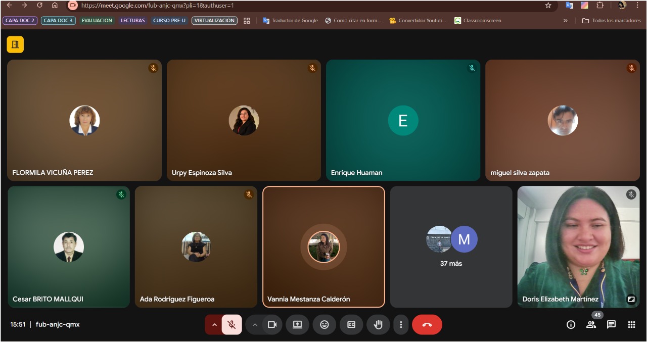 Invitada oficialmente por el Dr. Óscar Guillermo Ellacuriaga San Marón, responsable del Programa de Formación del Profesor Universitario (PROFORD), la Mg. Martínez participó como Docente Evaluadora, contribuyendo al fortalecimiento de las competencias pedagógicas y académicas de los docentes peruanos.