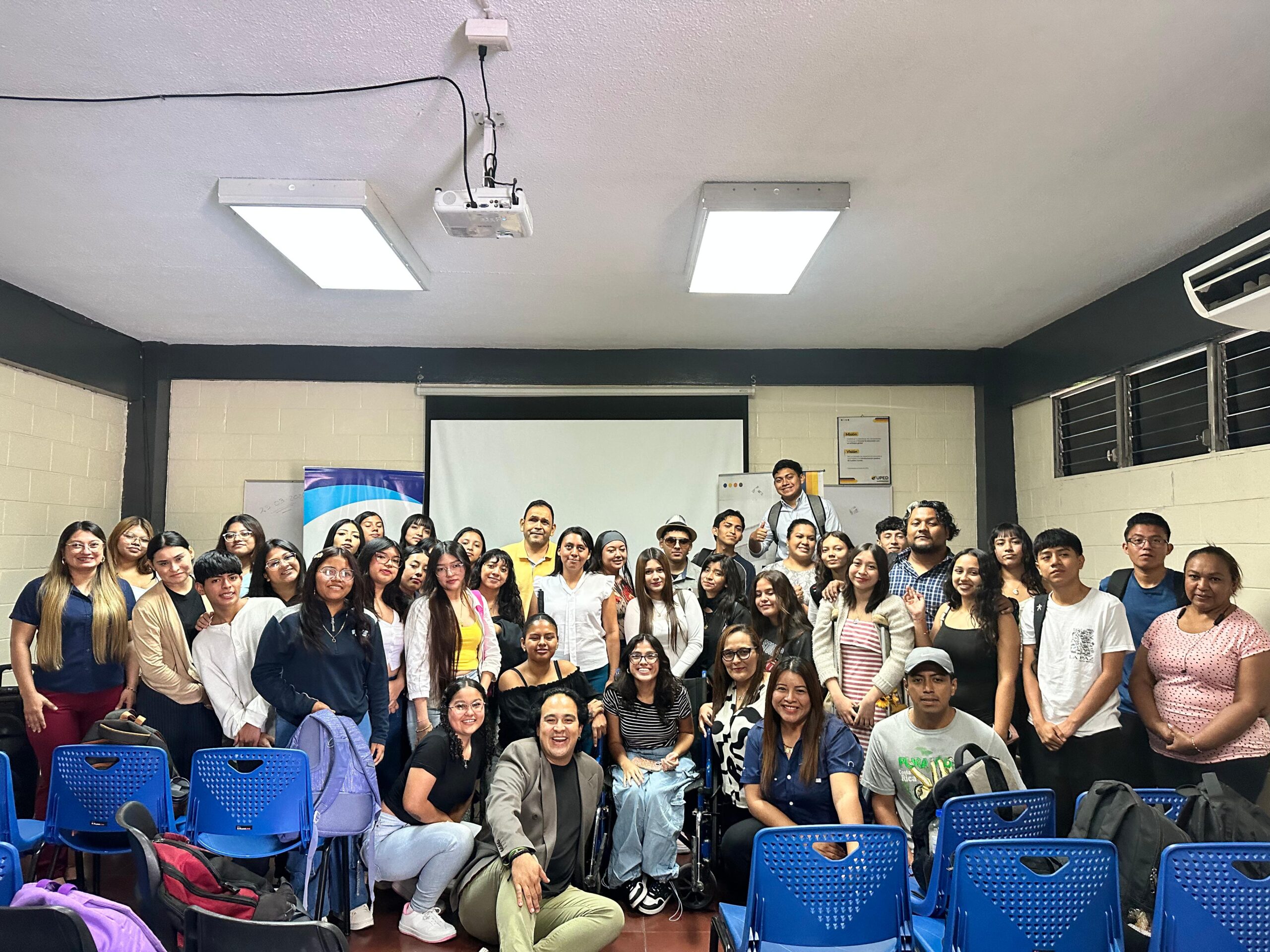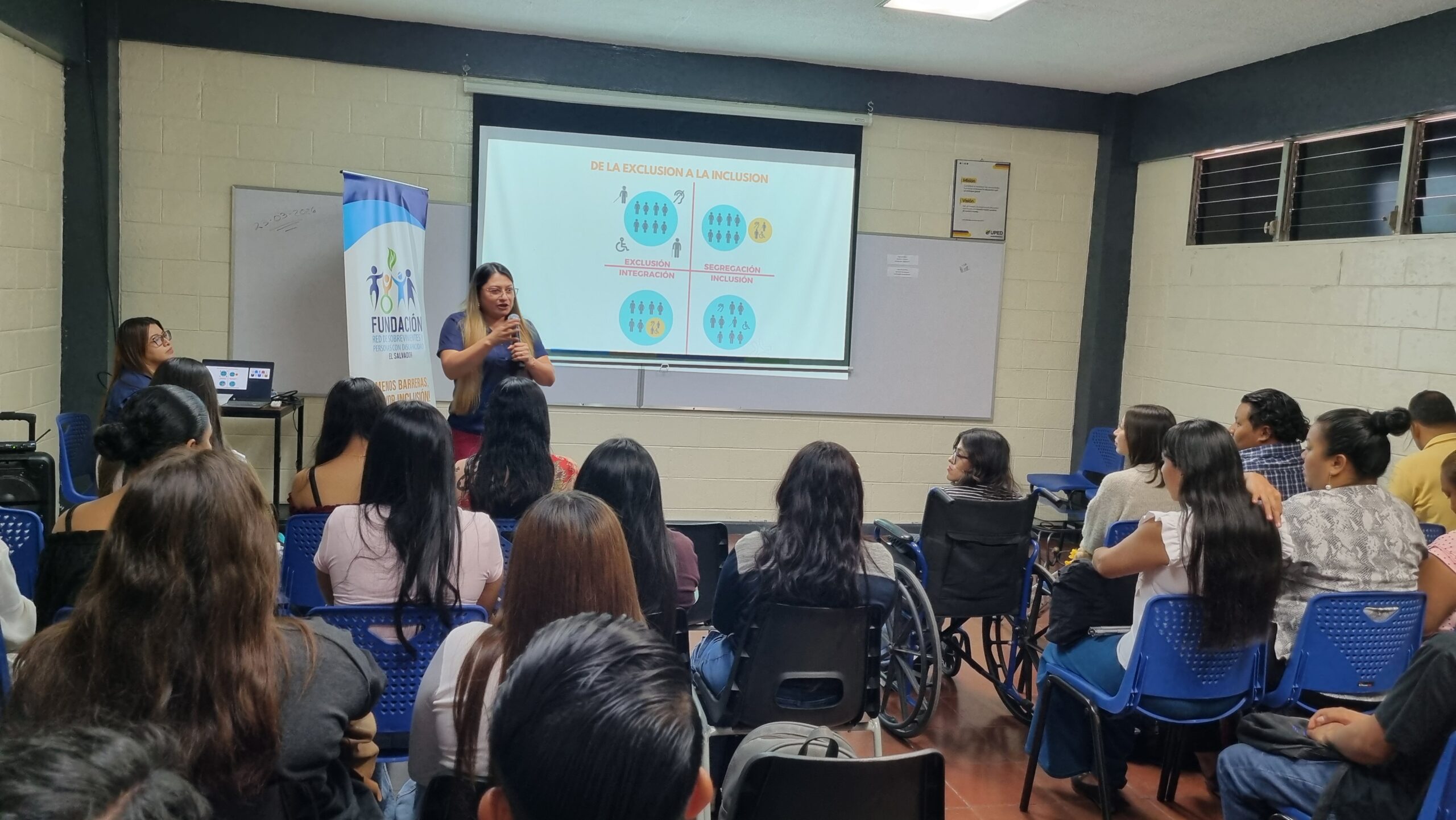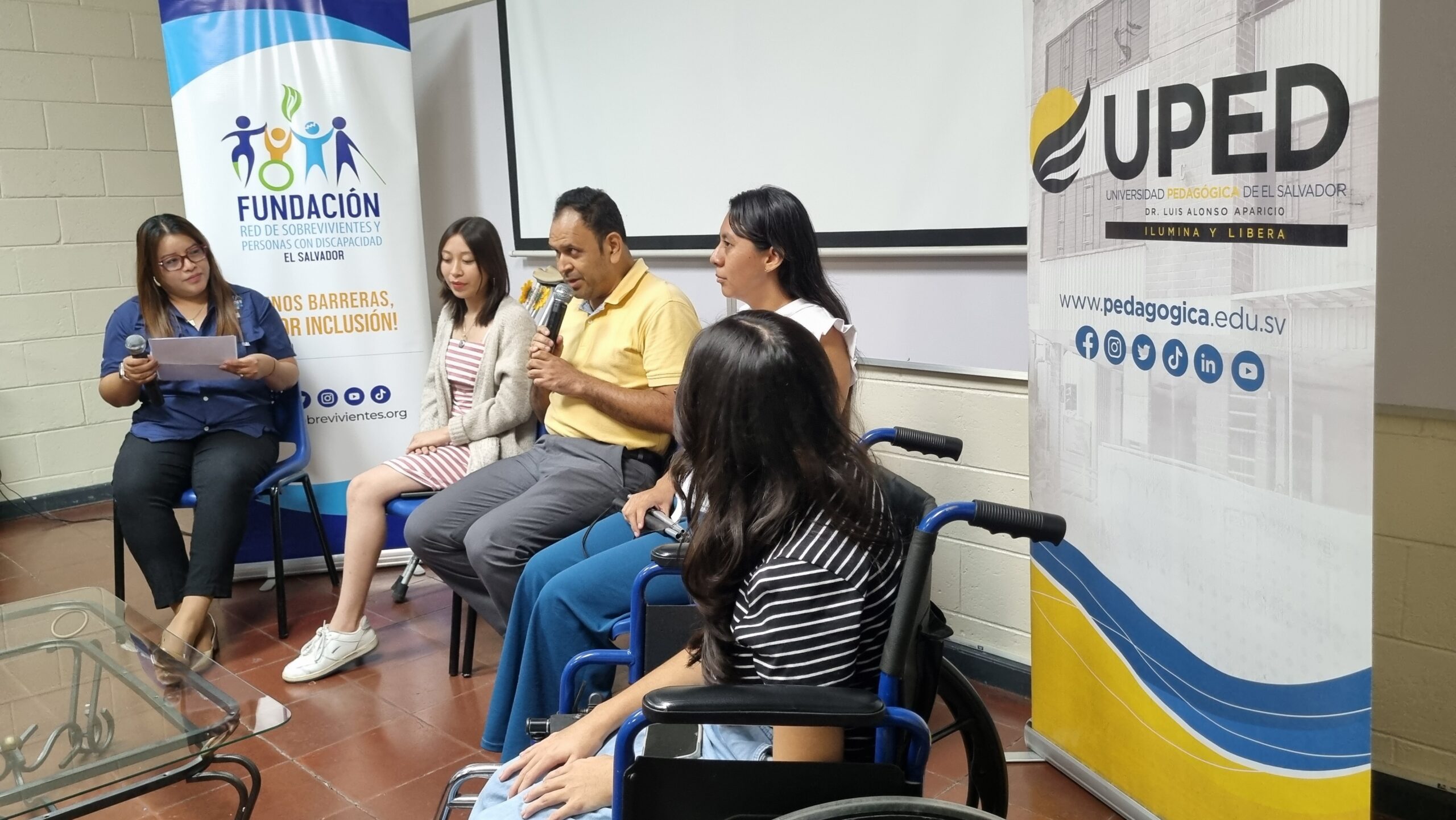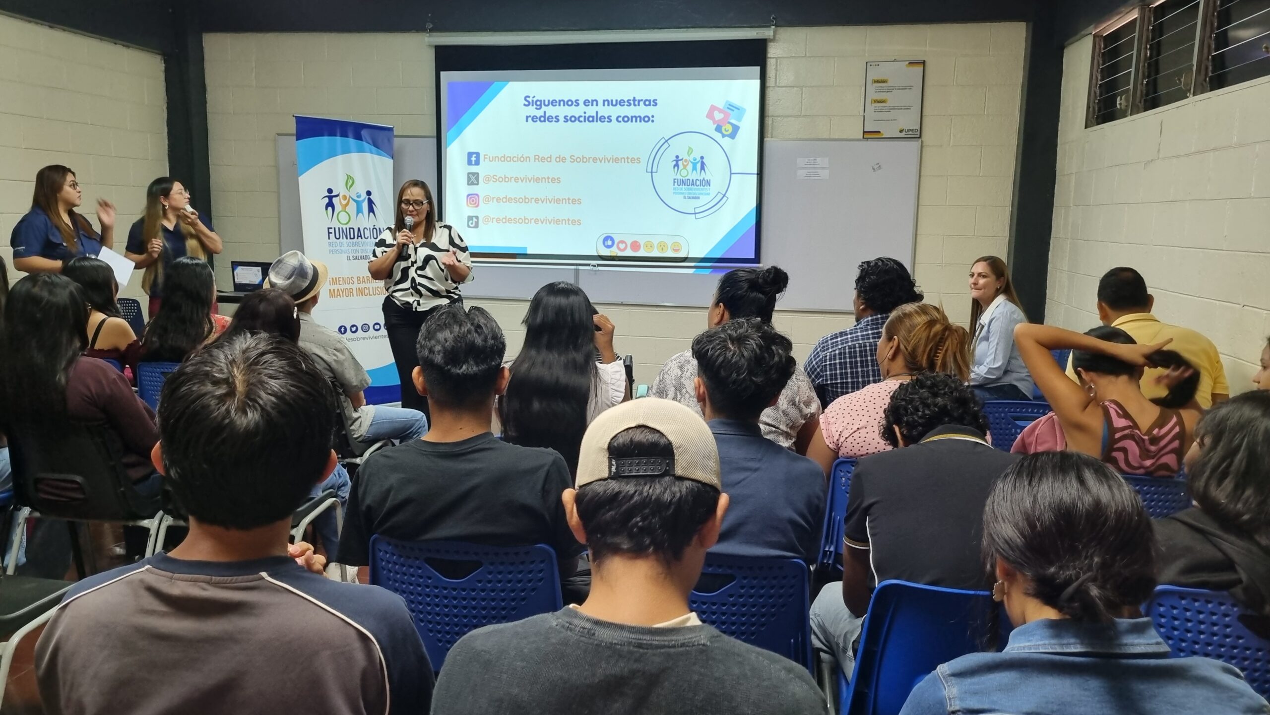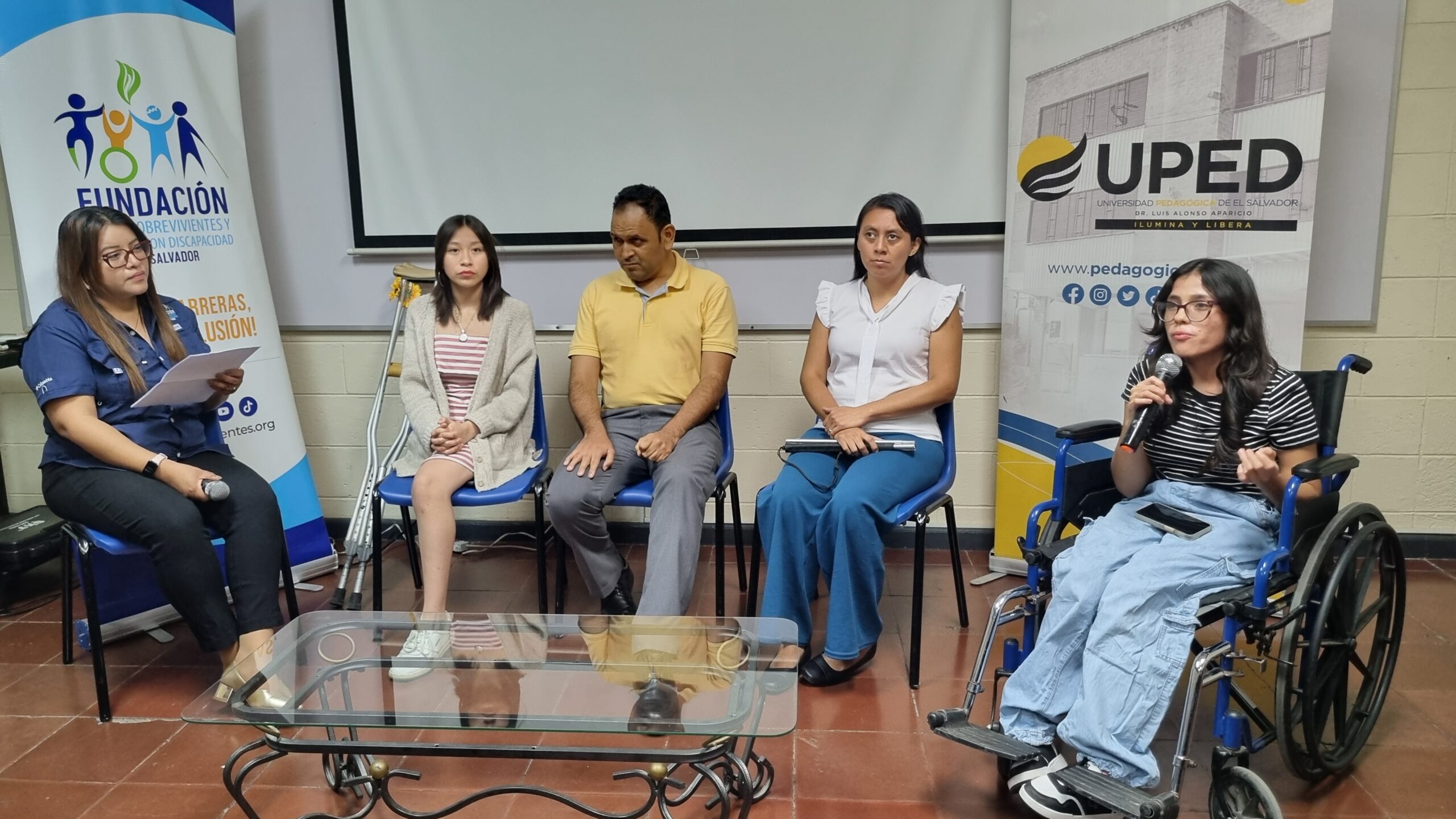 Estudiantes de la Facultad de Ciencias Económicas de la Universidad Pedagógica de El Salvador participaron en el conversatorio “Derechos Humanos y Discapacidad”, un espacio de diálogo y reflexión organizado por la Dirección de Bienestar Universitario, a través de la Coordinación de Servicios Educativos, en colaboración con la Fundación Red de Sobrevivientes y Personas con Discapacidad de El Salvador.