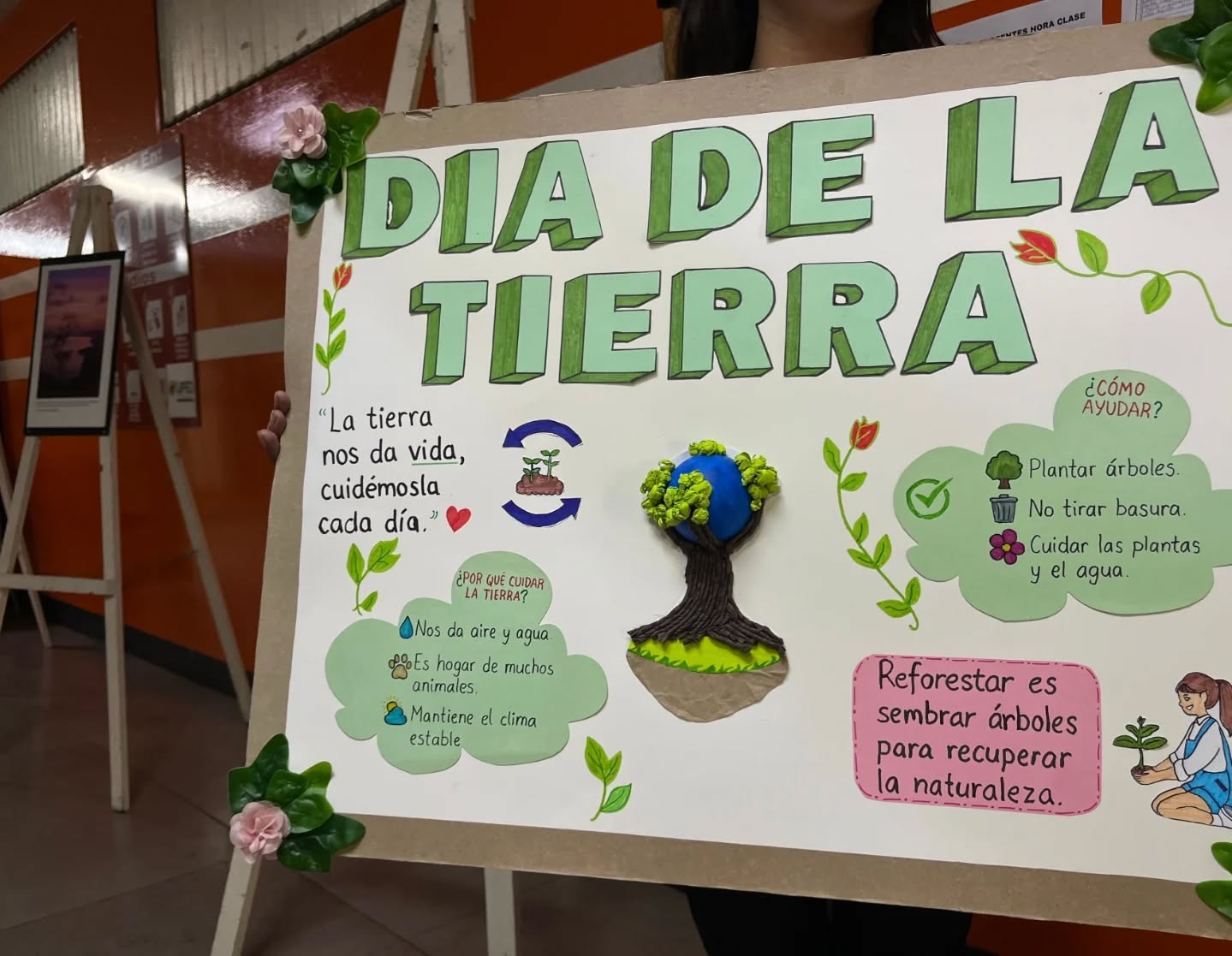 Como parte complementaria de esta jornada, se presentó una exhibición fotográfica compuesta por imágenes capturadas por estudiantes del proyecto. Cada fotografía fue acompañada de mensajes alusivos que reflejan su visión y conexión con el Día de la Tierra, fortaleciendo así la expresión creativa y el compromiso ambiental de la comunidad estudiantil.